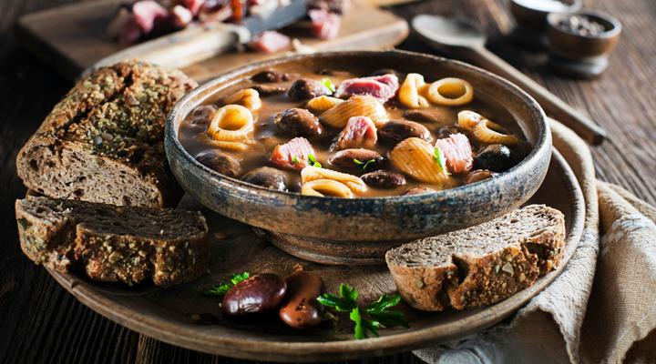 Паста с фасолью. Сытное, густое блюдо, которое согревает зимой. Вариантов — десятки. Где-то делают кремовой, где-то — почти супом. Но едят все: от студентов до бабушек.