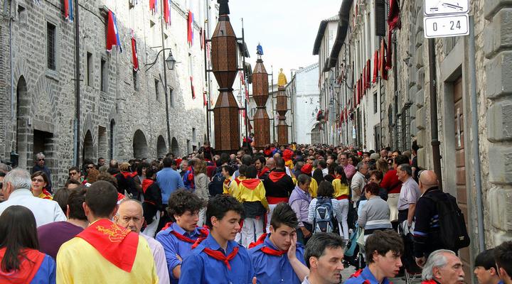 Один из старейших и экстравагантных фестивалей в Италии. Участники бегают по узким улицам с огромными деревянными свечами весом до 400 кг, которые несут вверх на гору Ингино. Это не спорт, а религиозный ритуал, продолжающийся с XIII века.