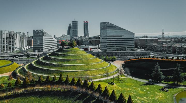 - Bosco Verticale (Вертикальный лес) — два жилых дома, покрытых сотнями деревьев. Издали действительно похожи на лес, подвешенный в воздухе. Итальянский ответ на вопрос: «Что будет, если природа и технологии начнут работать вместе?»