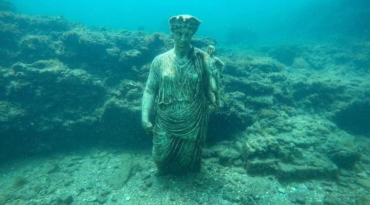 - видеть мозаичные полы, статуи, арки прямо под волнами
