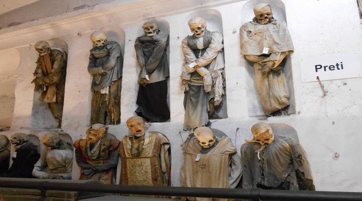 Если большинство подземелий сохраняет тени прошлого, то катакомбы капуцинов в Палермо открыто выставляют их на осмотр. Более 8000 мумифицированных тел – монахов, знати, художников, детей, стоящих и лежащих вдоль коридоров в своих погребальных одеждах.