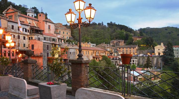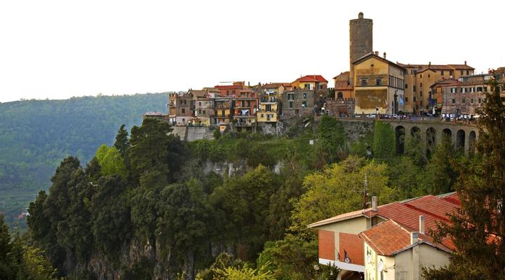 Над озером возвышается маленький городок Неми — словно иллюстрация из итальянской сказки.