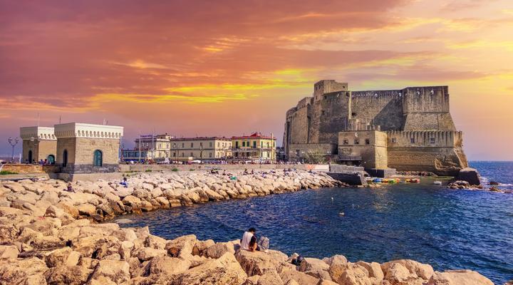 Castel dell’Ovo — найстаріший замок Неаполя, збудований на маленькому острові Мегарида. Назва походить від легенди, що поет Вергілій сховав у його стінах магічне яйце — і поки воно ціле, місту нічого не загрожує.