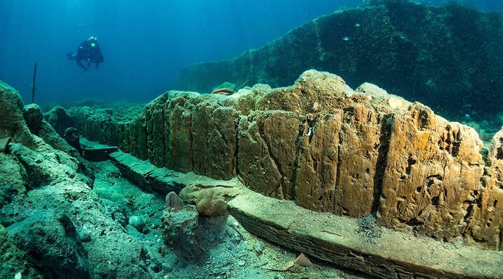 Римские виллы, мозаики, колонны — всё под водой из-за вулканической активности.